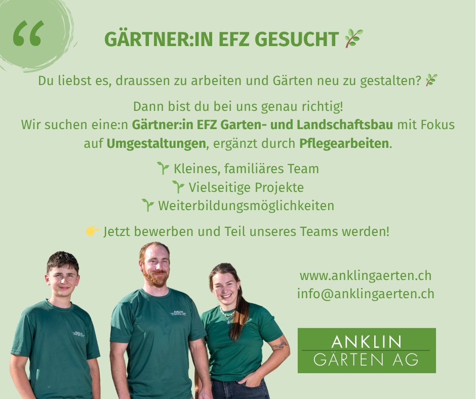 Bei Anklin Gärten AG verbinden wir jahrelange Erfahrung mit innovativen Ideen. Unsere spezialisierten Gartenexperten verstehen es, Ihre Wünsche und Vorstellungen in atemberaubende Gartenlandschaften zu verwandeln.